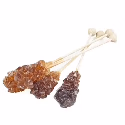 12 st bruna kandisocker (bröstsocker) på pinne, paketerad i cellofanstrut eller påse. Använd till att söta te, kaffe, irish coffee eller ät som sockerklubba.