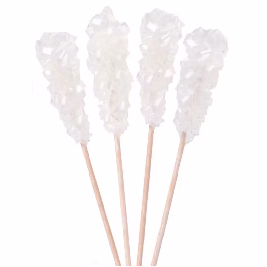 12 st vita kandisocker (bröstsocker) på pinne, paketerad i cellofan. Använd till att söta te, kaffe, irish coffee eller ät som sockerklubba.